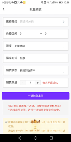 2找到“批量铺货”这个选项并点击,就能马上开启商品管理流程,让后续操作进入更高效的模式。