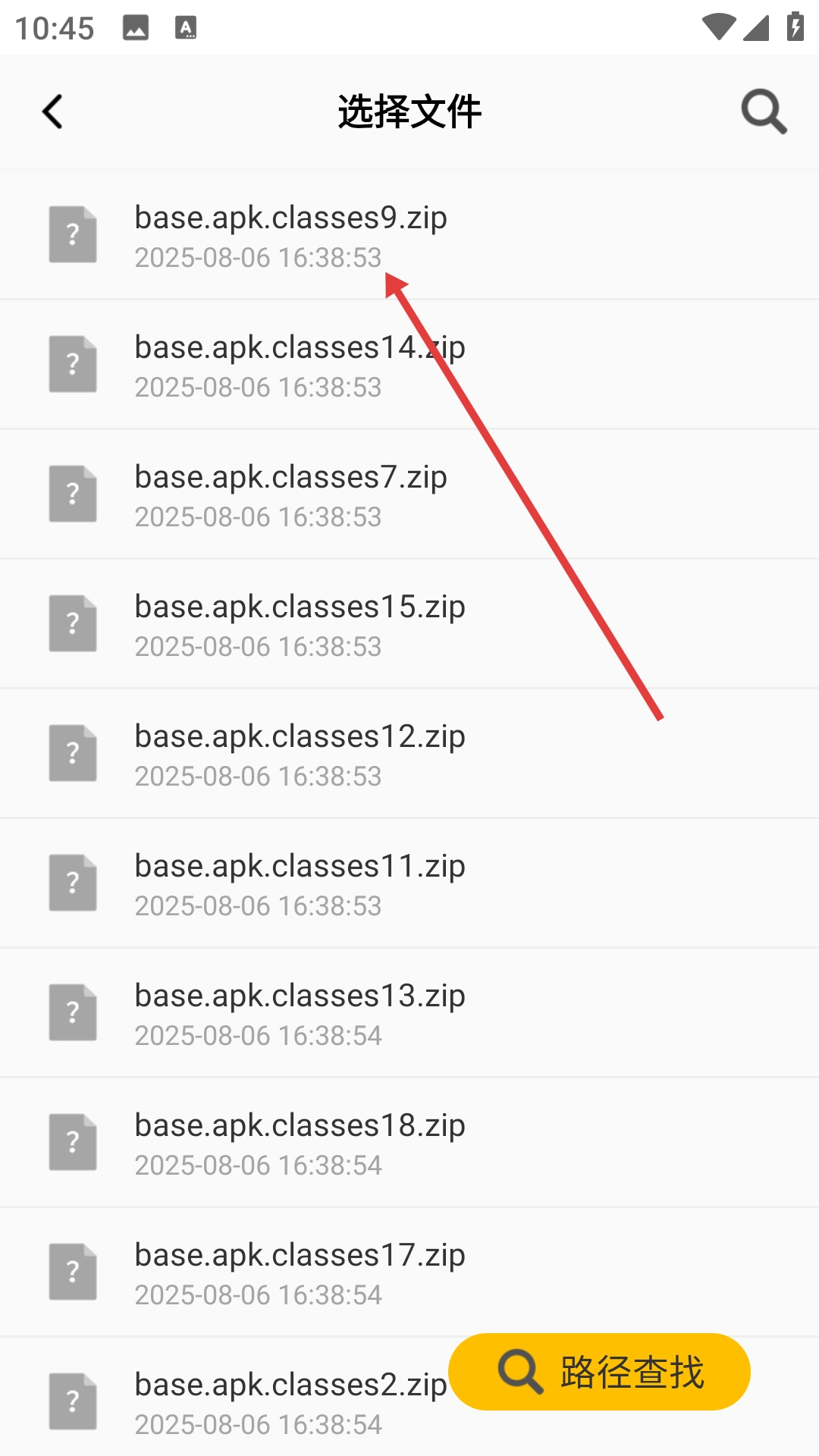 2、在选择文件页面点击要解压的文件,进入文件详情页面。