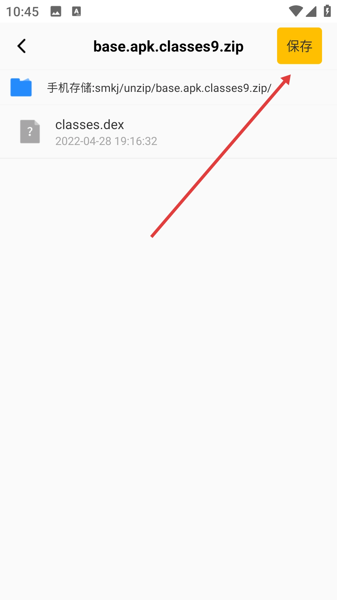 3、在文件详情页面点击【保存】,完成文件解压保存操作。