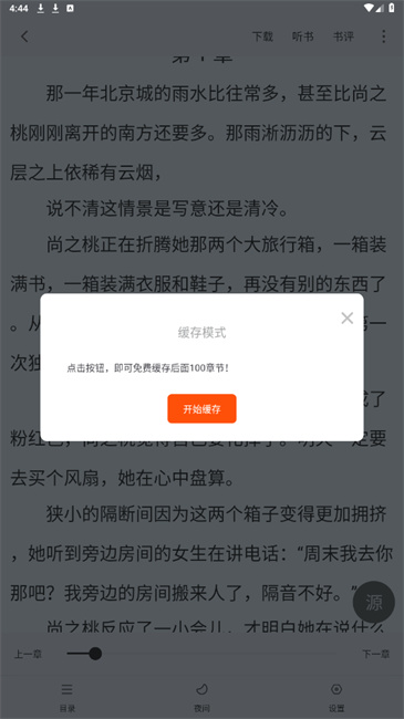2、接着在小说阅读界面的右上角点击对应的标志,就能完成小说的缓存操作了。