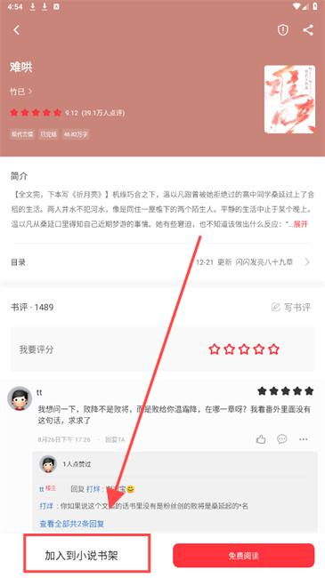 2、然后在小说详情页面点击“加入到小说书架”,就能完成书单的收藏操作。