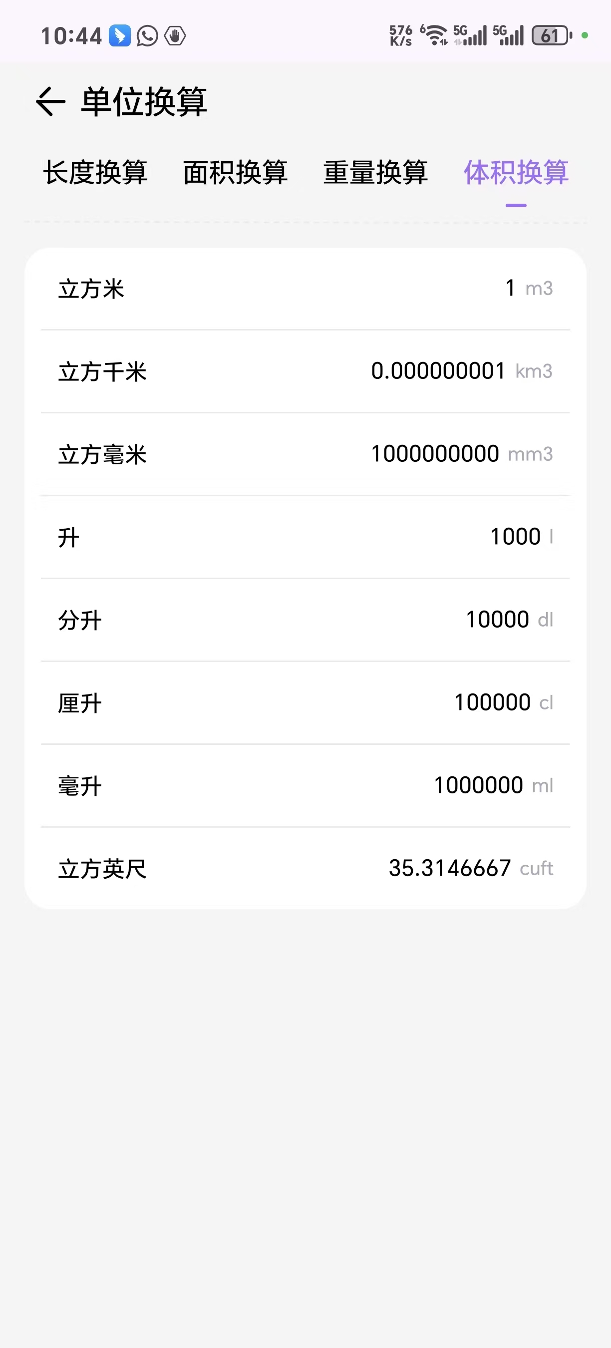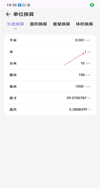 在单位换算的长度换算页面,把数值设定为1米,就能看到它对应的千米、分米、厘米等其他长度单位的换算结果。