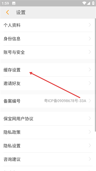 2、进入设置页面后,点击【缓存设置】选项,即可进入缓存设置页面。