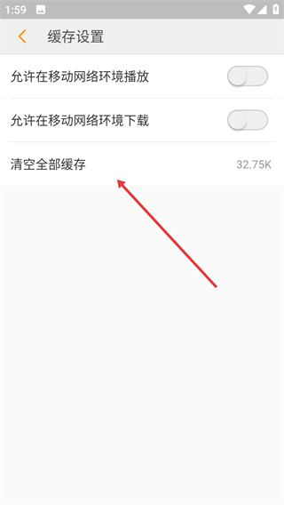 3、进入缓存设置页面后,点击【清空全部缓存】选项,此时会弹出清除缓存的确认框。
