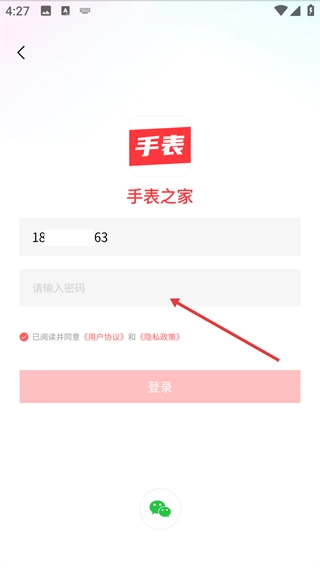 3、在手机号码输入框中填写好对应的号码后,点击【请输入密码】输入框,为填写登录密码做准备。