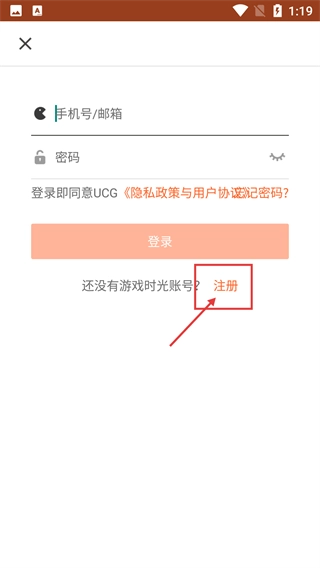 3、在登录界面中,若还没有账号,点击【注册】选项,就能进入账号注册流程,填写相关信息来创建新账号。