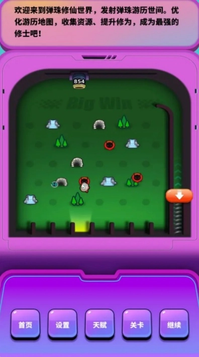 1、突破了传统修仙游戏打坐修炼的固有模式,也跳出了弹珠游戏仅专注于闯关的单一框架,通过弹珠弹射的操作来推动修仙进程的发展。