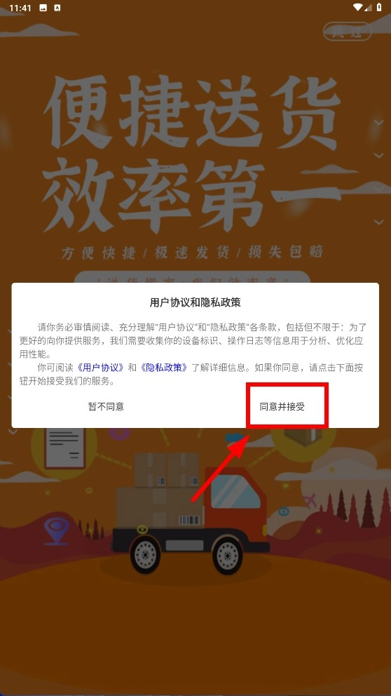 1、在用户协议界面,点击【同意并接受】按钮,确认服务条款,进入后续流程。