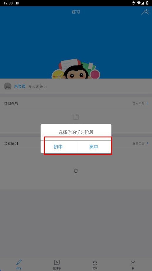 2、进入后选择学习阶段,如【高中-学习阶段选项】。