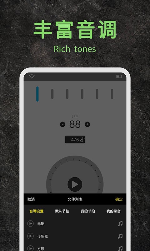 2、节拍器助手的音调设置功能支持自由调整不同音调,能更好地辅助学习。