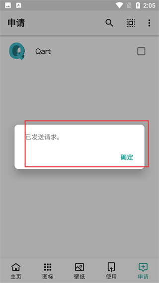 3、选中【Qart】后,点击页面底部的【申请图标】按钮,即可提交该应用的图标申请请求,等待流程推进。