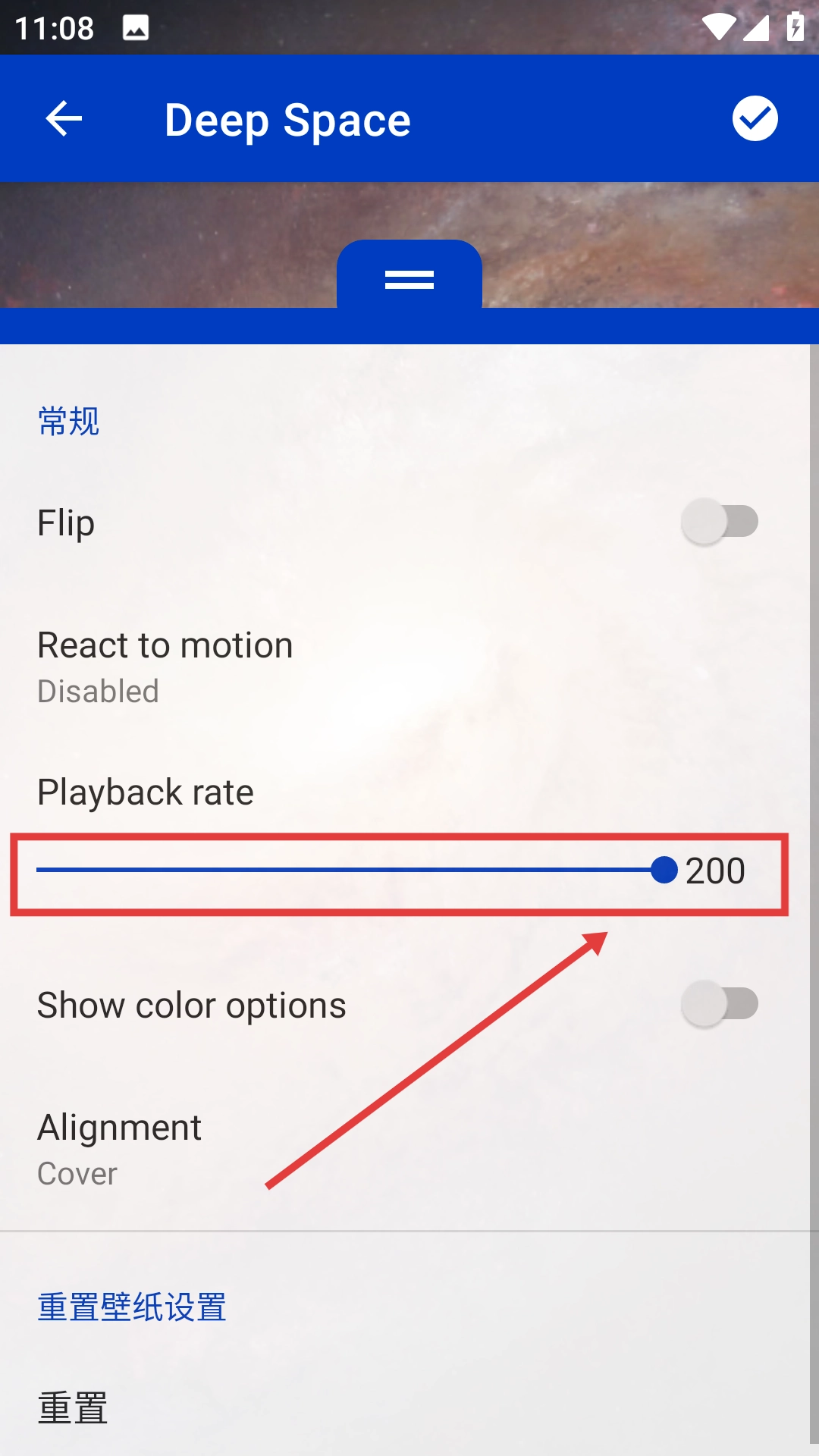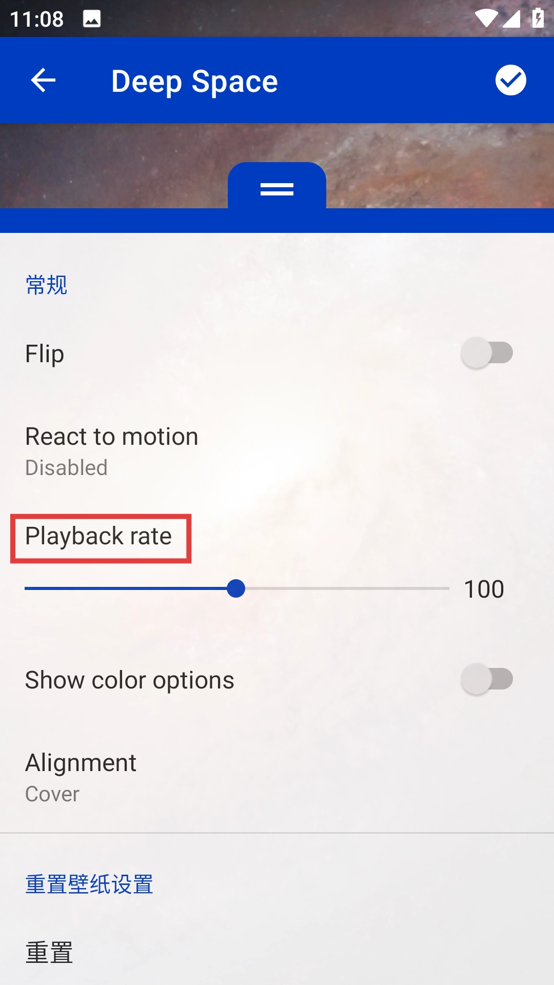 2、进入壁纸设置页面后,找到【Playbackrate】选项。