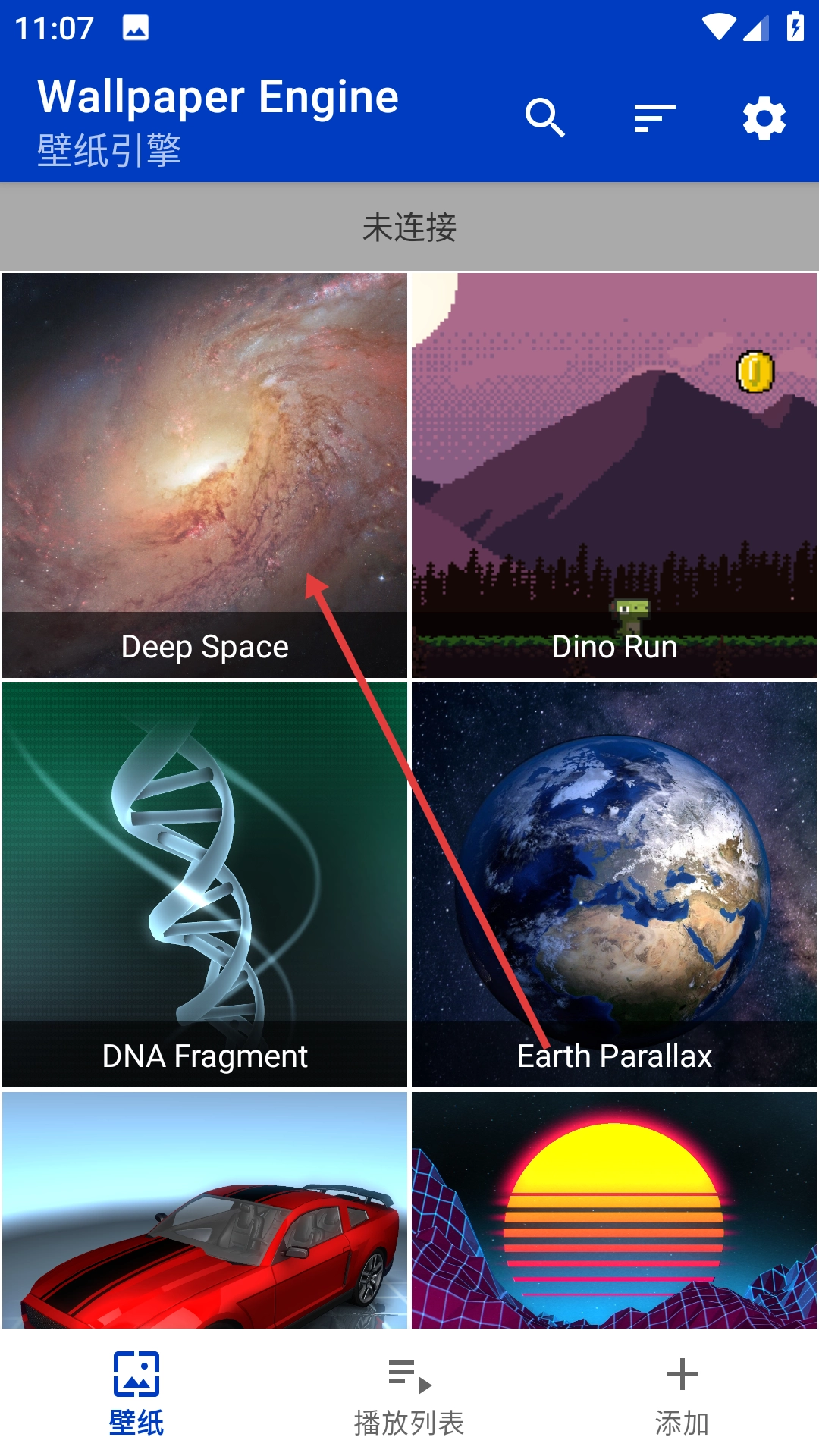 1、在WallpaperEngine壁纸引擎中选择要设置的壁纸,如【DeepSpace】。