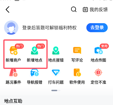 3、于我的反馈频道内,能够发现添加商铺、新增地点等功能,可依据自身需求进行选择。