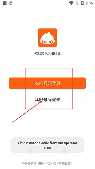2、在登录选择页面,可选【本机号码登录】或【其他号码登录】,若本机号登录异常,切换至其他号码登录即可。