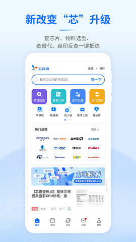 作为电子信息产业领域专业人士的交流平台,X星球专注于助力电子从业者高效拓展行业人脉,实现与行业专家的深度互动。芯查查整合了全国范围内的企业信息资源,向用户提供企业查询、企业负责人检索、专利信息查询、潜在客户挖掘等全方位的企业数据服务。借助数据挖掘技术驱动的智能推荐系统,芯查查为半导体行业从业者精准推送海量个性化的实时行业资讯与深度干货内容,已成为行业精英群体获取专业信息的首选平台。此外,芯查查还具备芯片替代方案查询功能,能够帮助用户快速找到合适的芯片替代品。