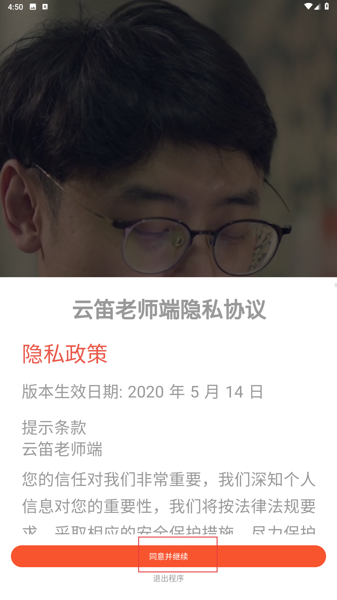 1、在隐私协议页点击【同意并继续-按钮】,进入下一步操作。