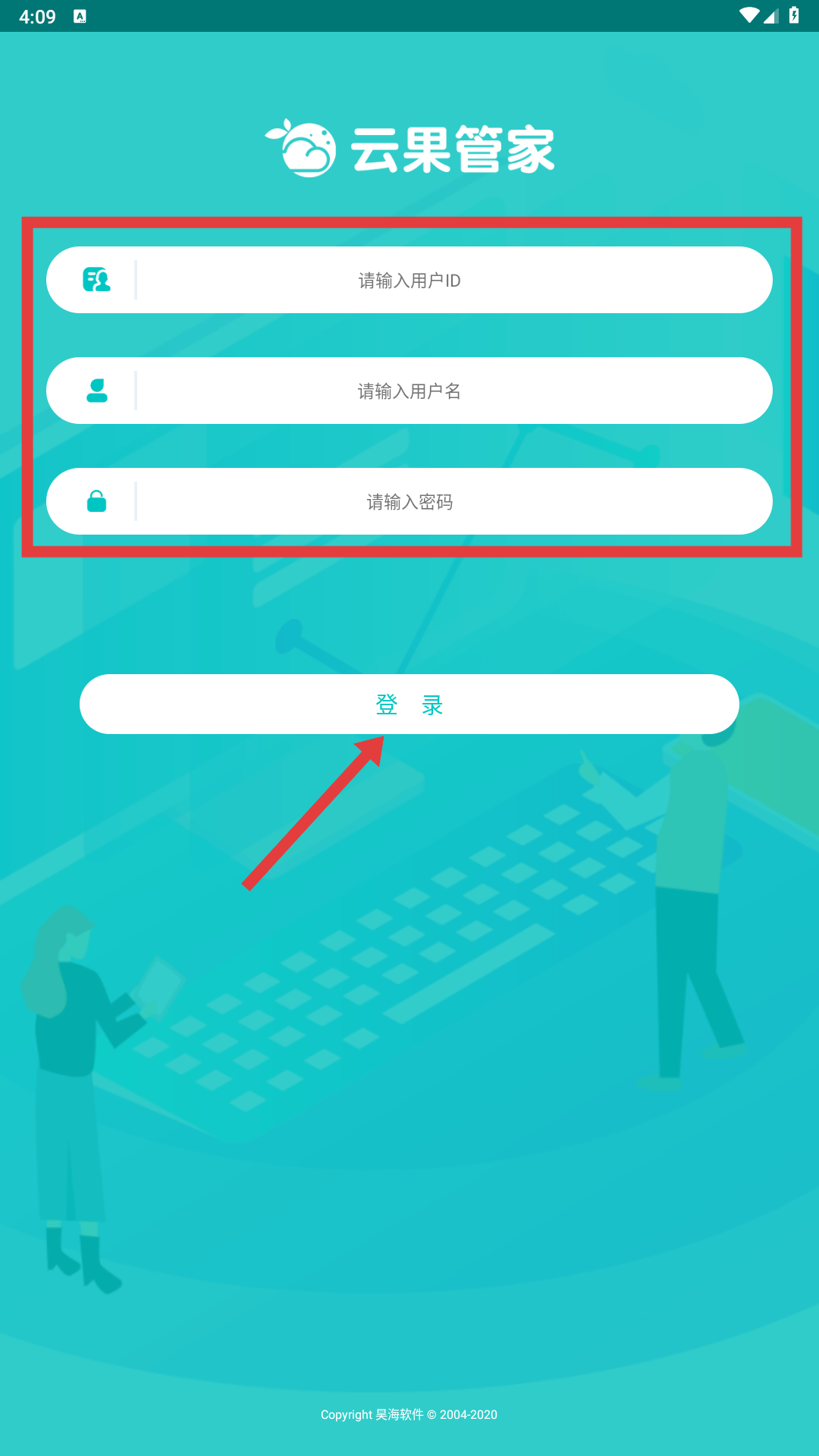 2、在登录界面,依次填写【用户ID】【用户名】【密码】,完成信息录入后点击【登录】,进入应用系统。