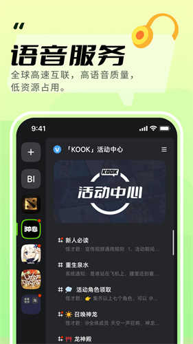 1、作为一款热门的掌上组队神器,KOOK语音让用户轻松结识游戏伙伴,尽享激情四溢的游戏时光;
