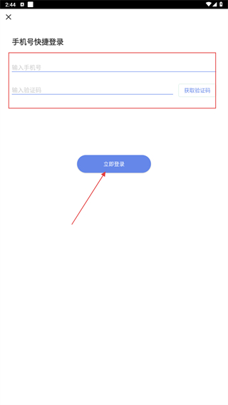 4、若选择通过手机号登录,需填写手机号和验证码,之后点击【立即登录】功能按钮。