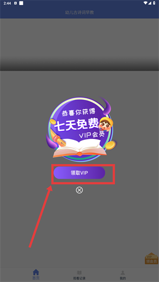 当遇到VIP会员弹窗时,点击弹窗内的“领取福利”按钮即可。