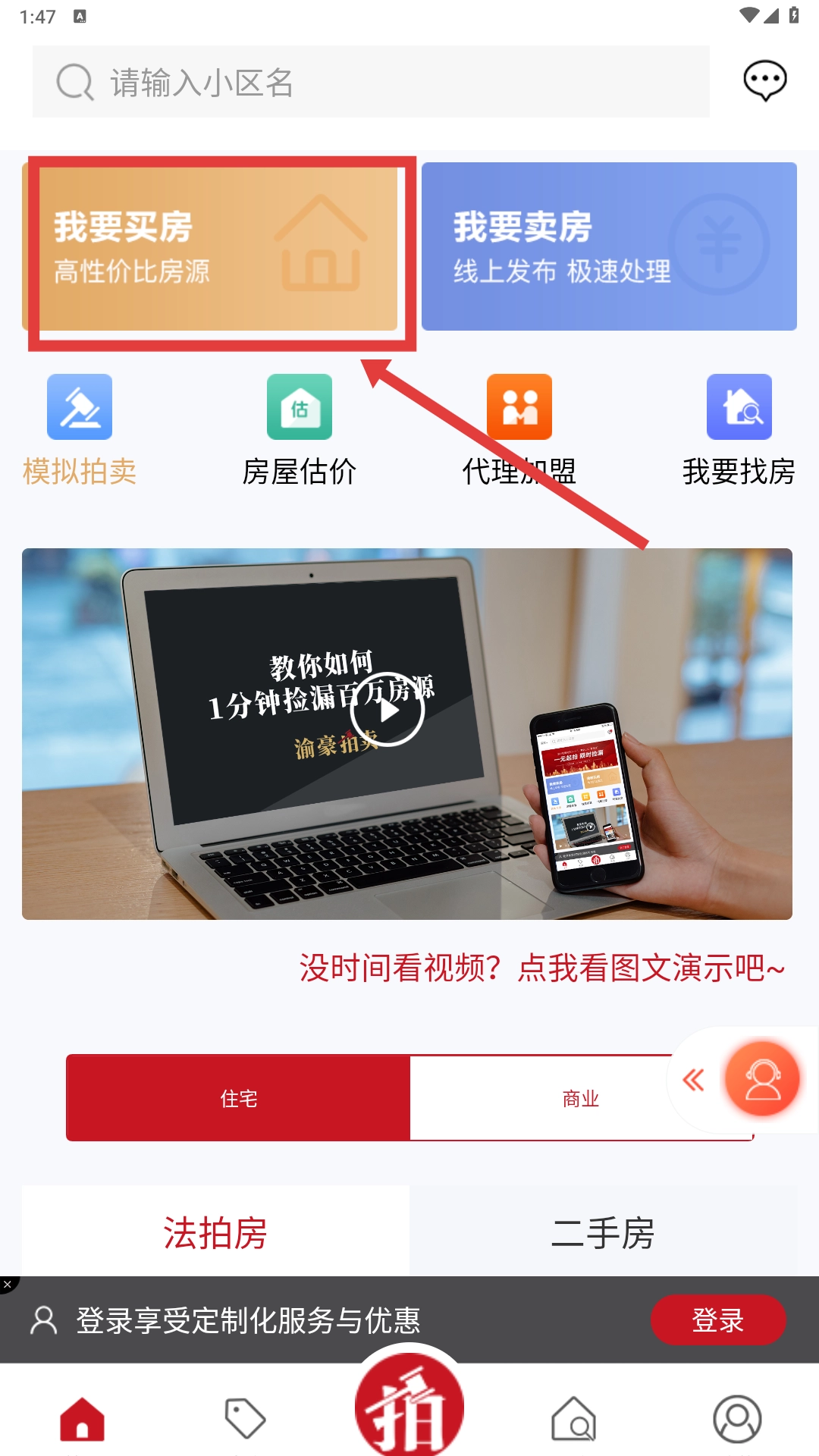 1、在首页点击【我要买房-功能按钮】,进入房源列表页面查看高性价比房源。