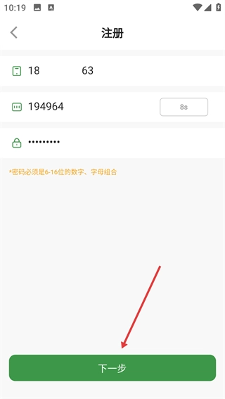 3、在注册界面填写好手机号、验证码和密码后,点击用于激活的【下一步】按钮,即可进入后续的信息完善环节。