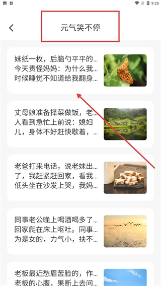 4、回到首页,浏览【元气笑不停板块】里的内容,获取轻松有趣的信息。