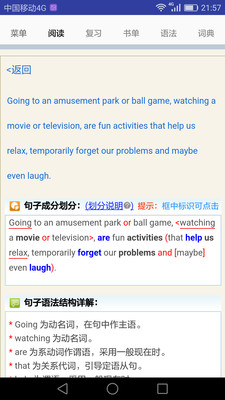 3. 语法解析:借助语法解析功能,学生能够更透彻地掌握句子构造,增强阅读理解的水平。
