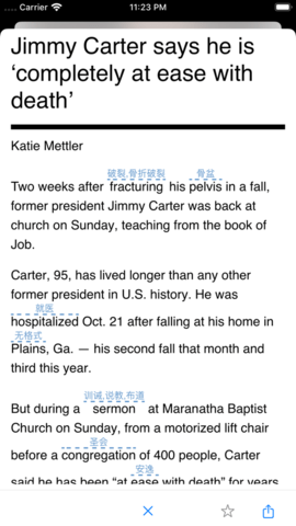 2系统未自动标注的词汇也无需担心,你可以直接点击任意单词,系统会立即为你朗读该词的发音。