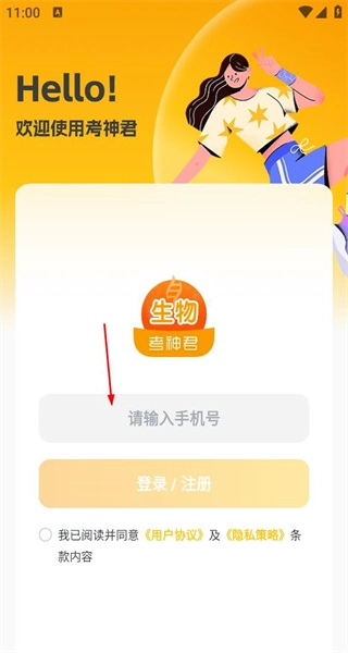 3、进入登录界面,输入对应的手机号码,勾选相关协议条款,点击登录注册按钮以完成操作。