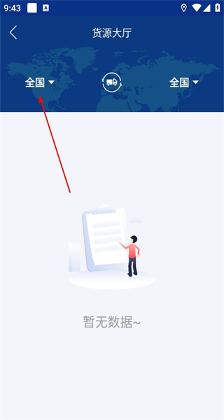 打开软件后,页面上会显示全国范围的标识以及“暂无数据”的提示,此时选择对应的区域选项,即可进入用于选择地址的省份列表页面。