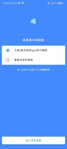 2. 进入页面后,挑选加速线路,大陆用户线路为默认选项。