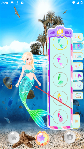 1、人鱼公主装扮沙龙的图形界面精美细腻,色彩搭配和谐,为玩家营造了一个梦幻般的海洋世界。