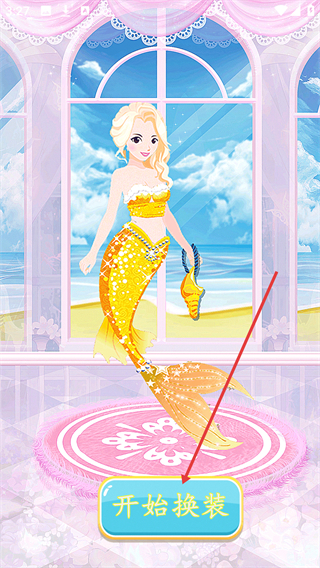 1、点击【开始换装】按钮,进入换装界面,可对美人鱼形象进行装扮调整。