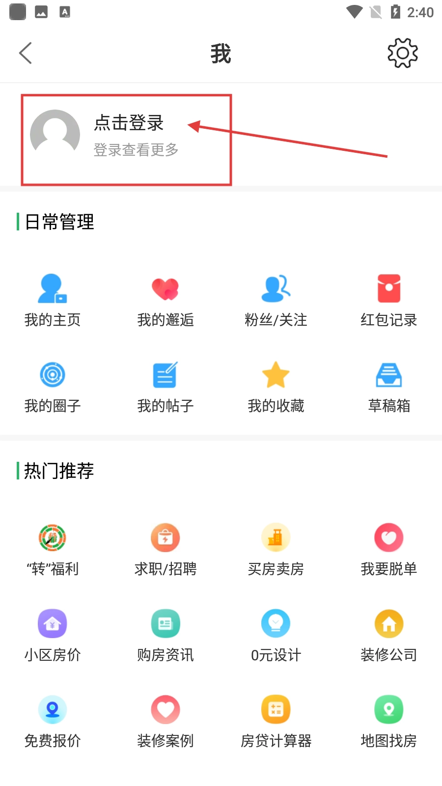 1、在软件首页,点击左上角的人物图标,可进入个人中心页面,查看日常管理和热门推荐等功能选项。