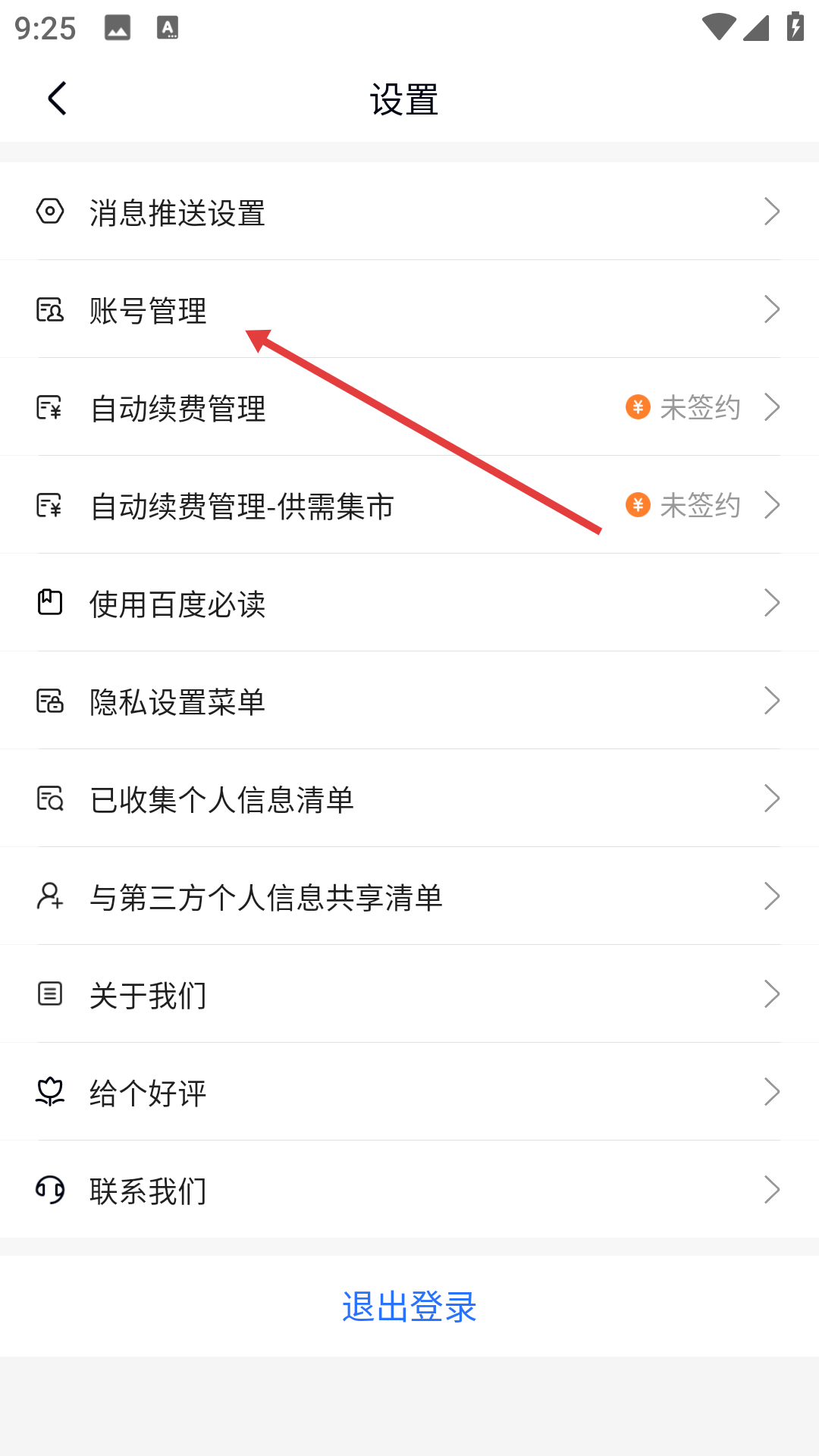 2、在设置页面中点击【账号管理】选项,即可进入账号管理页面。