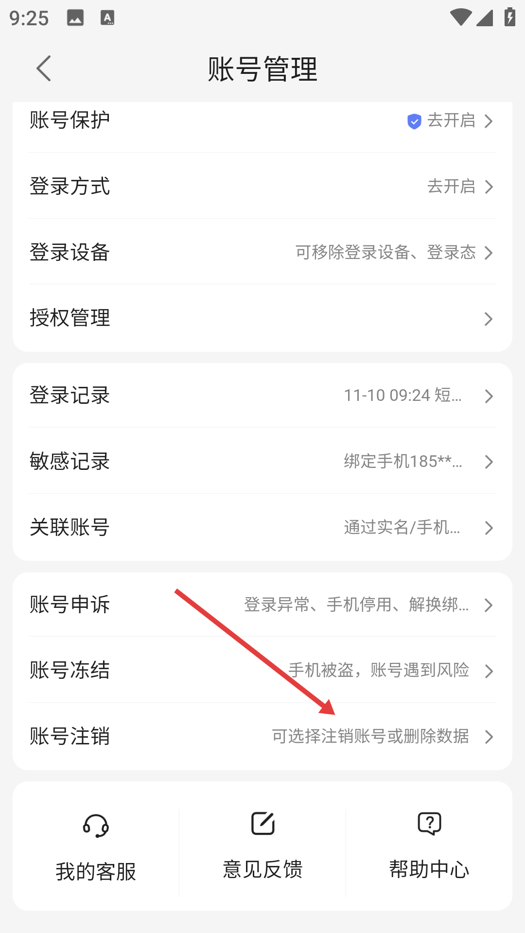 3、进入账号管理页面后,找到并点击【账号注销】选项,即可进入账号注销页面。