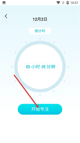 3、在专注计时界面点击【开始专注】按钮,启动计时,页面会显示当前计时时长。