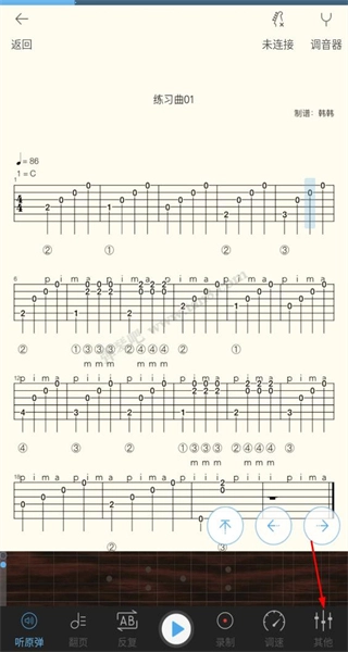 2、谱曲分类:内吉他谱按照曲风、难度等分类,方便用户根据自己的喜好和水平选择合适的曲目练习。