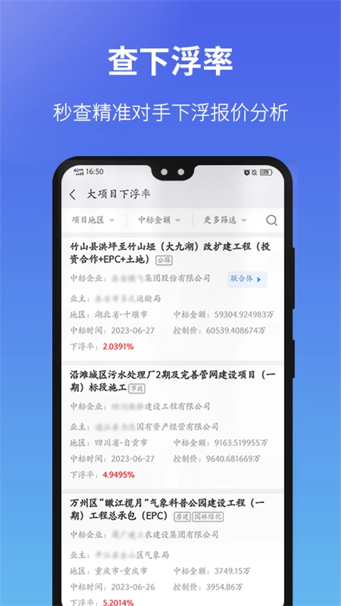 2、工程项目追踪:用户能够在此实时跟进建筑企业的最新工程项目动态,涵盖项目类型、规模、进度等具体信息,这对开展全面的市场分析很有帮助。
