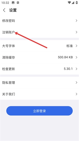 3、进入设置页面后,找到并点击【注销账户】选项,即可跳转至注销注意事项页面。