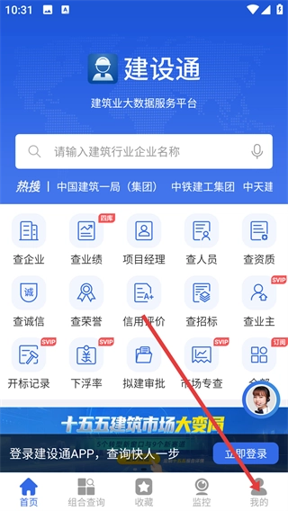 1、在建设通首页点击右下角的【我的】按钮,即可进入个人中心页面。