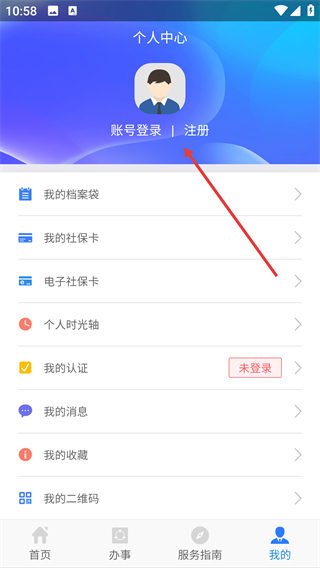 2、在个人中心页面点击【注册】选项,进入账号注册的信息填写界面。