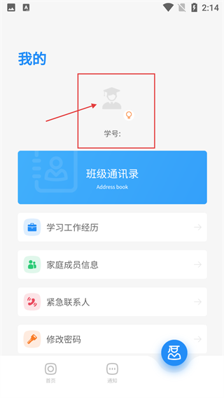 1、进入【我的】页面,可查看【学号】,找到【班级通讯录】-【Address-book】,还能查看学习工作经历等相关信息。