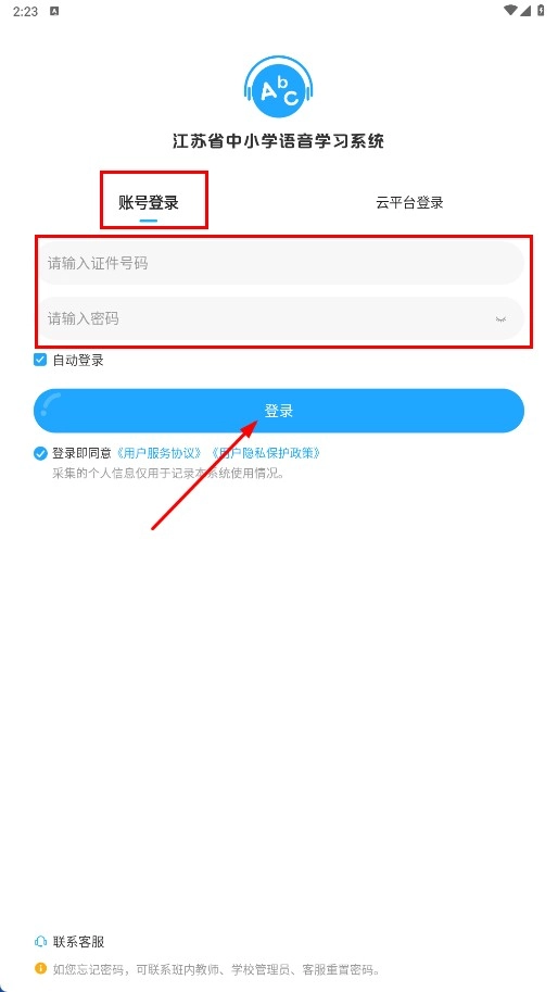3、选择【账号登录-登录方式】,输入证件号码和密码后点击登录。