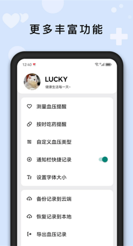 这款健康记录工具专为血压监测设计,能随时记录用户的血压数据,通过智能图表直观展示变化趋势,方便日常追踪。针对血压异常的人群,它还整合了多种急救方案,可在紧急情况下提供实用指导,是日常健康管理的得力帮手。
