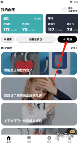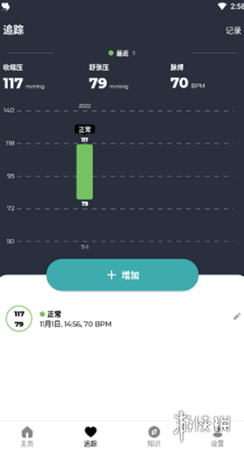 2、在首页,点击“增加”按钮后,填写所测量的收缩压数值。