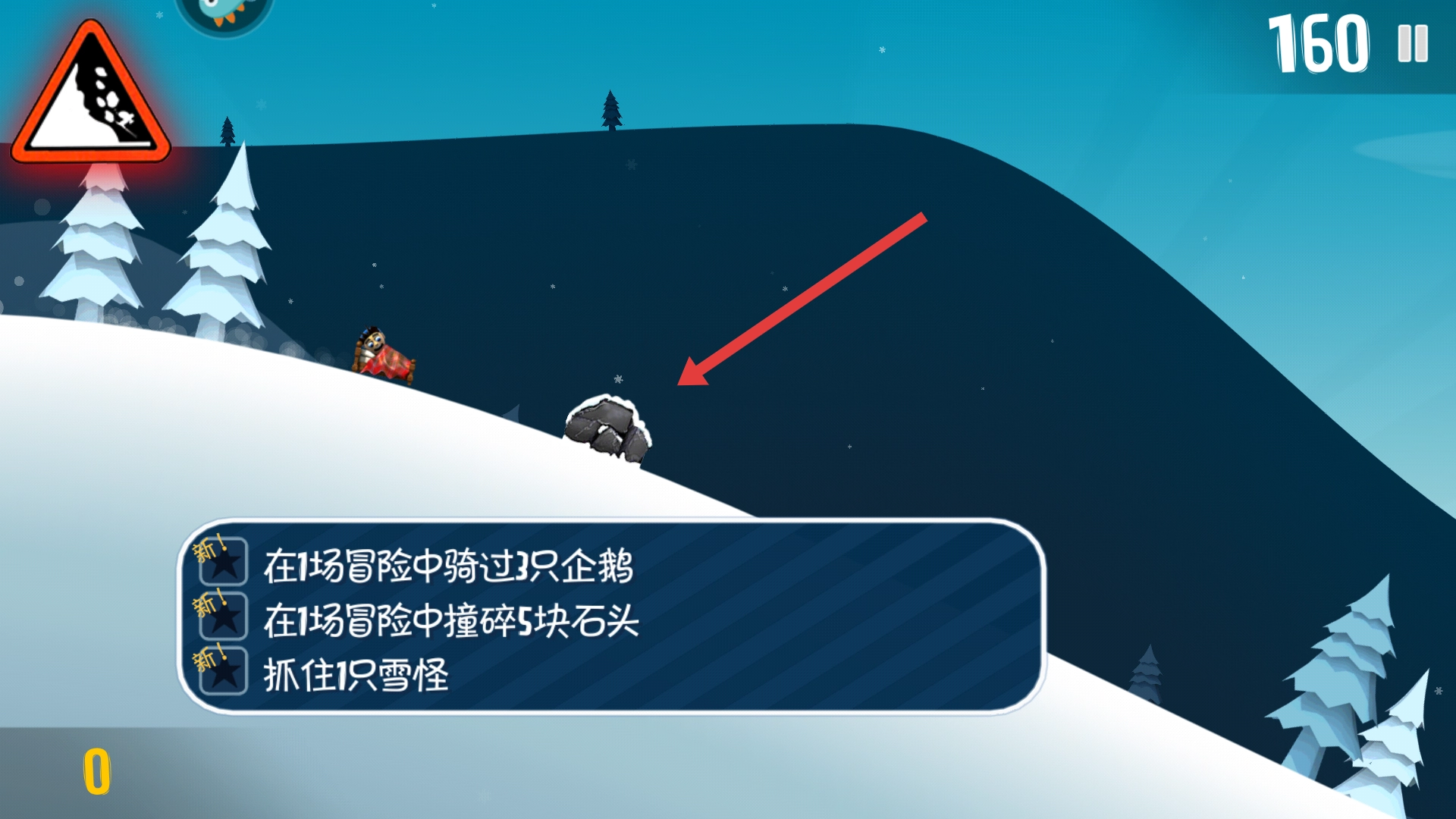 3、在游戏过程中,操控角色撞碎石头等障碍物,完成如【在1场冒险中撞碎5块石头】的任务。