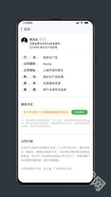 2用户能够在线对接潜在合作对象,通过交换联系方式,让即时沟通变得更加便捷高效。